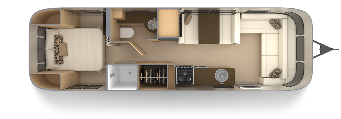Ultraleather® Seating- At Airstream, every single design choice is made for a reason. And in fact, there are plenty of reasons we use Ultraleather for our travel trailer furniture. It’s incredibly supple and soft, yet durable and long-lasting with special strengthening components. It resists temperature change and will never crack from cold weather. And it’s easy to clean, pet-friendly, and won’t scratch or stain, so your furniture looks as beautiful on day one as it does long down the road.