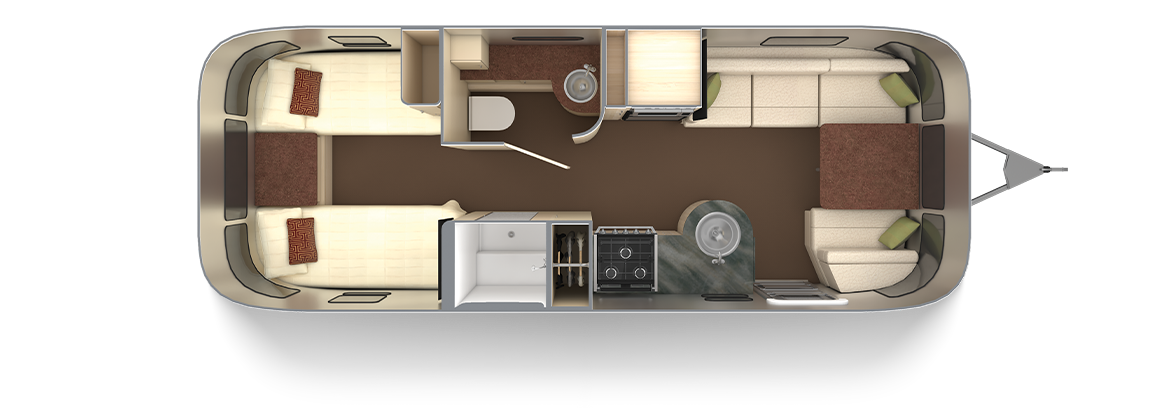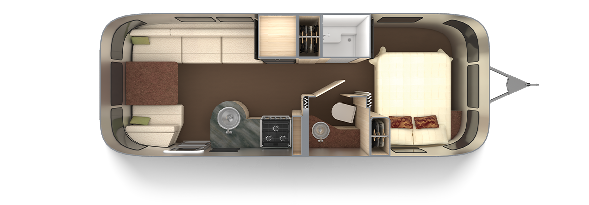 Panoramic windows- The iconic Airstream shape isn’t just aerodynamic. It also allows for panoramic windows that wrap around the curves of the trailer and let natural light fill the interior space. Open them up for a gentle breeze to flow through, watch the landscape as you cook a meal, or watch the sunrise from your bed.